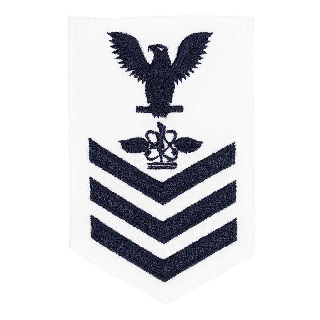 Navy E6 FEMALE Rating Badge: Aviation Warfare System Operator - white