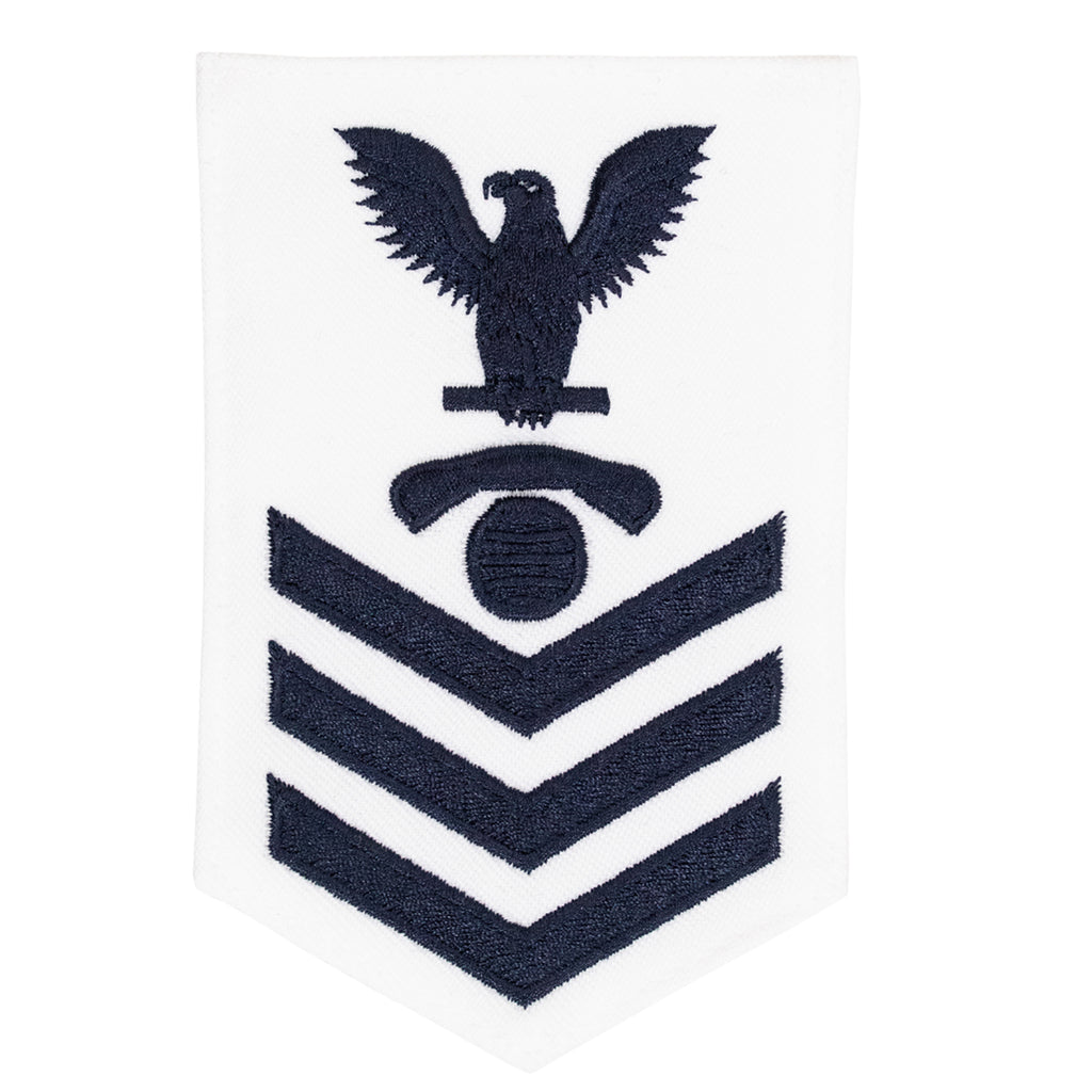 E-6 Interior Communications Technician (IC) white Navy Female rating badge.