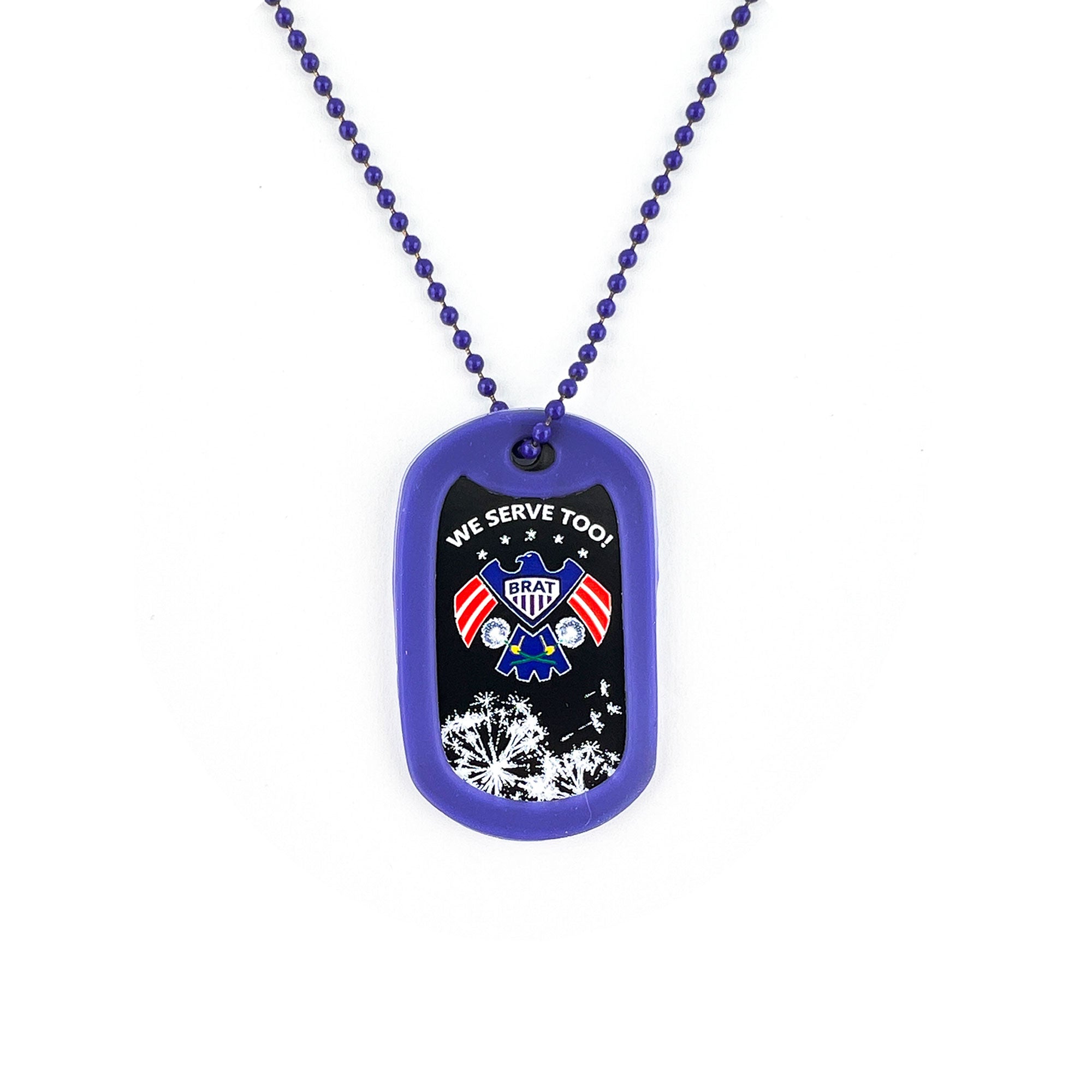 Military Brat Achievement Dog Tag Purple: We Serve Too - with Silencer and Chain