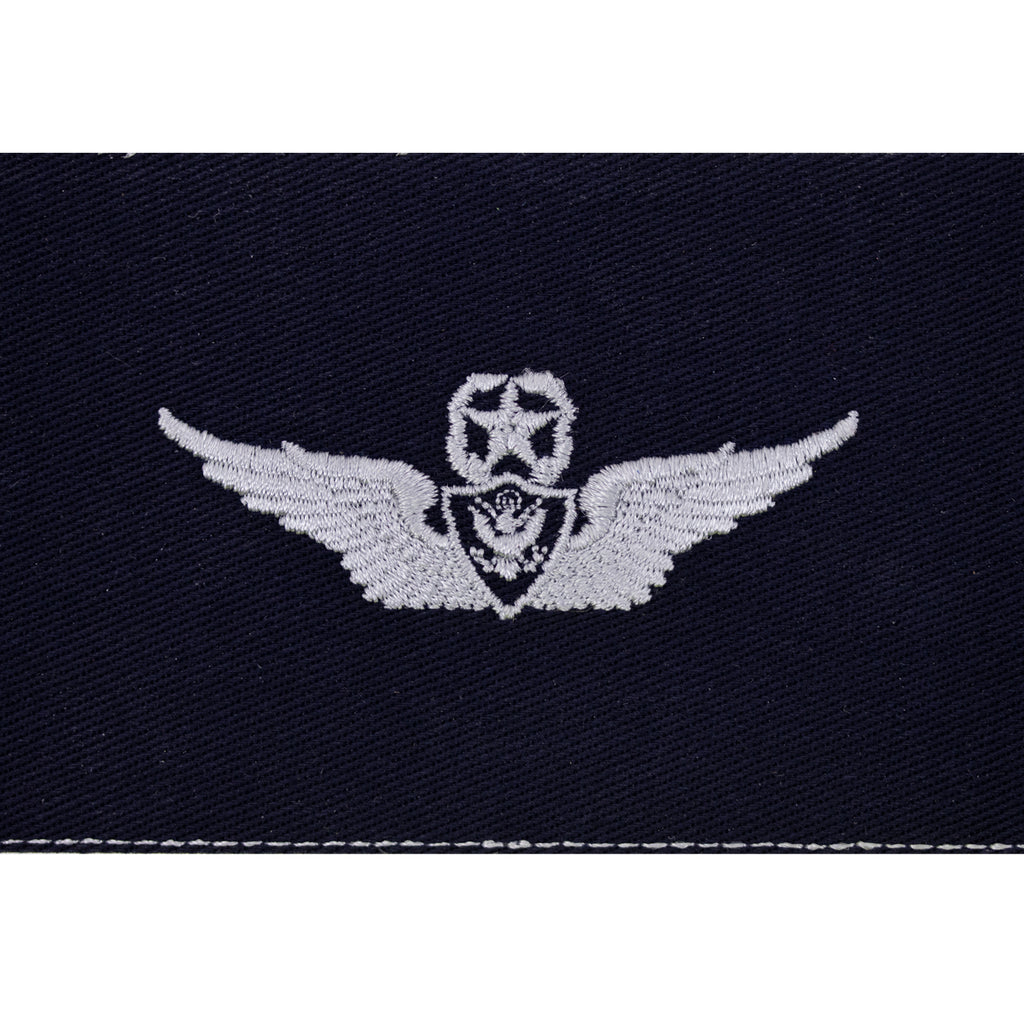Army Master Aircraft Crewman embroidered in silver on dark blue cloth. This item is worn by senior members of the Civil Air Patrol (CAP) who have earned this aeronautical rating while on active duty with the Air Force on ABUs and BDUs.