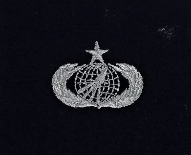 Air Force Senior Acquisition cloth wings embroidered in silver on dark blue background. for wear on BDUs, ABUs and CAP blue field uniform.