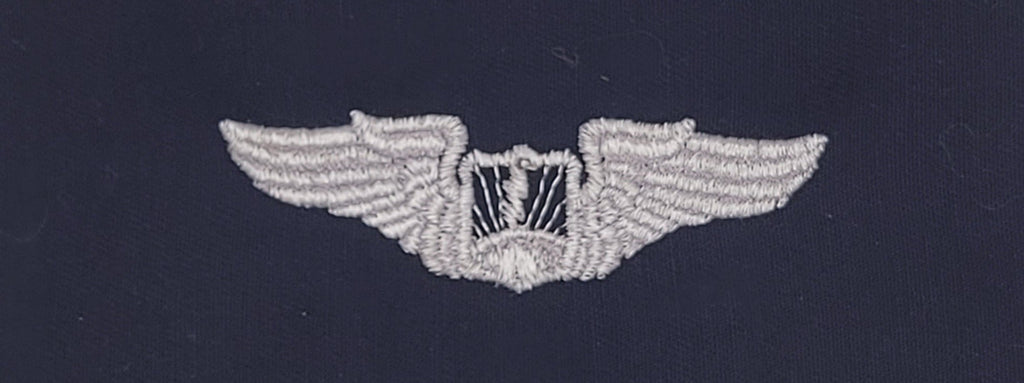 AF Basic Unmanned Aircraft Systems embroidered in silver on dark blue cloth. This item is worn by senior members of the Civil Air Patrol (CAP) who have earned this aeronautical rating while on active duty with the Air Force on ABUs.