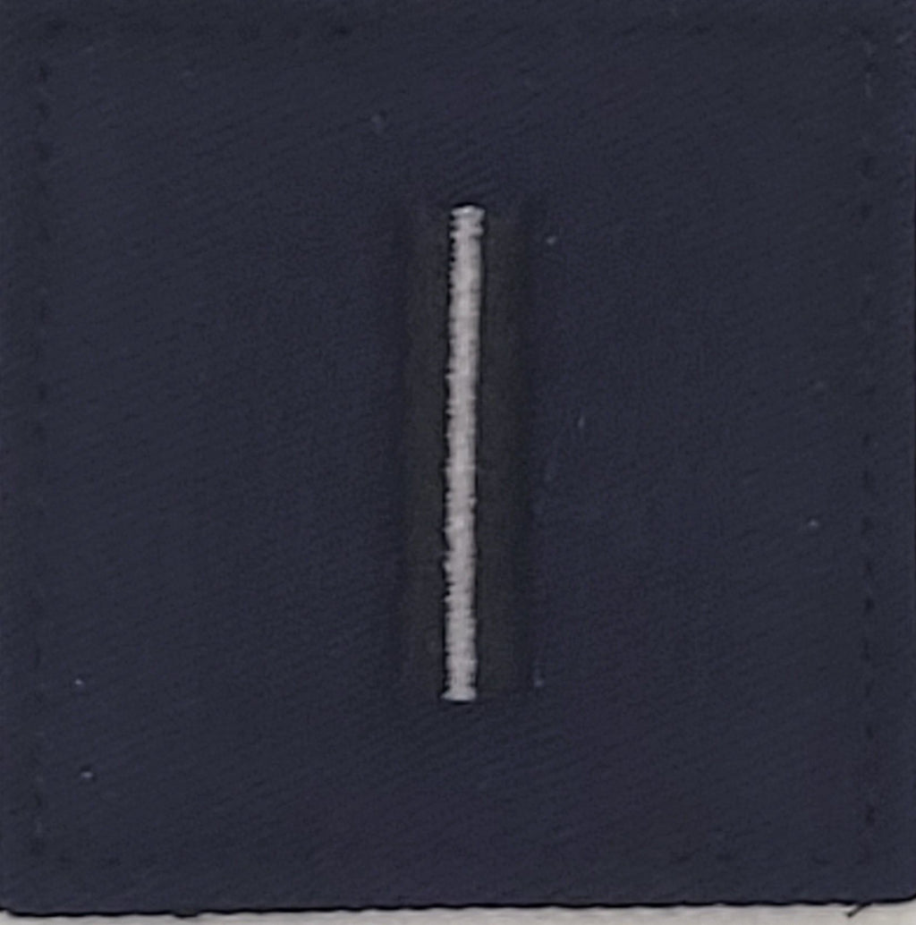 Senior Member rank worn on the fleece and the OCP uniform for Flight Officer for senior members. Grade embroidered in gold on dark blue background with hook. For wear on the tab of fleece jacket and OCP uniform.