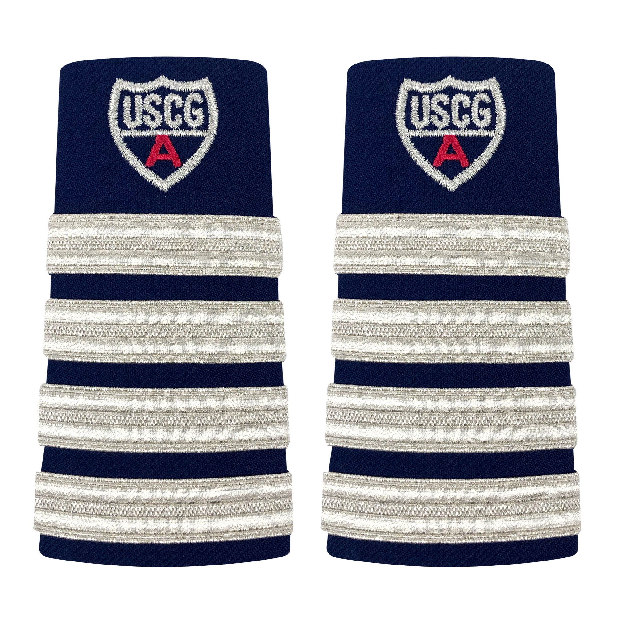 Coast Guard Auxiliary Enhanced Shoulder Board: DC- 4 STRIPES & RED "A"
