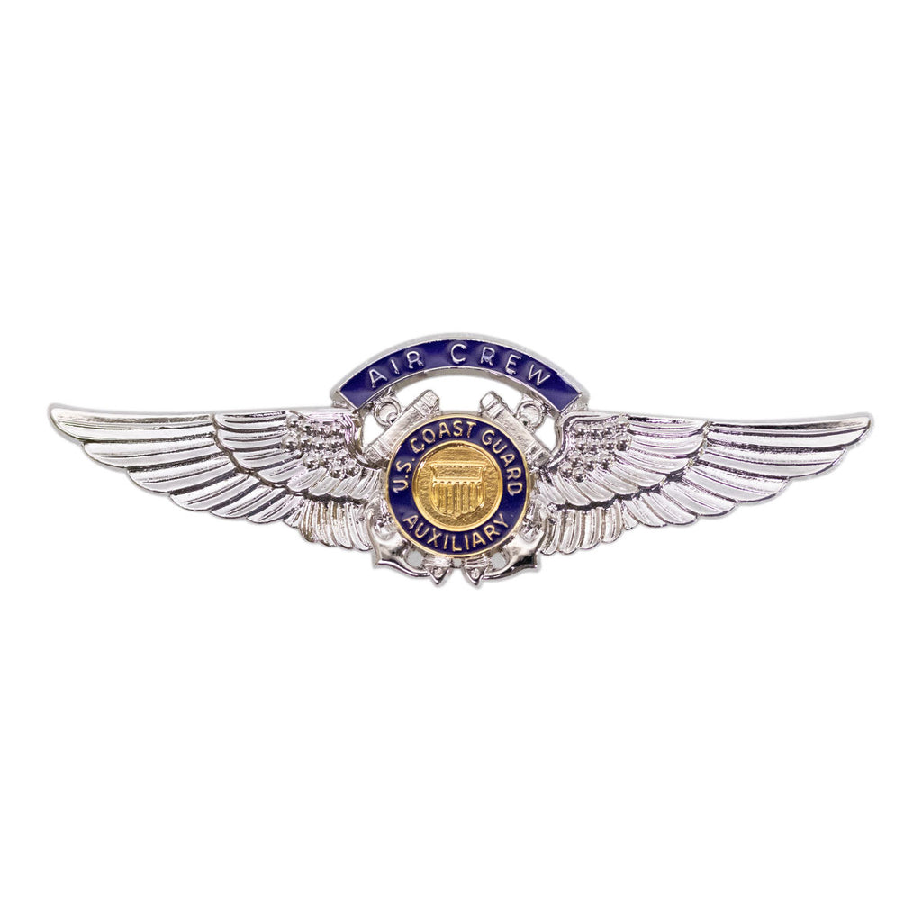 Coast Guard (USCG) Auxiliary Aircrew Regulation Badge. The Auxiliary air crew qualification was created to provide the Auxiliary Pilot a capable assistant during all phases of Auxiliary aviation missions and especially during times of high cockpit workload.