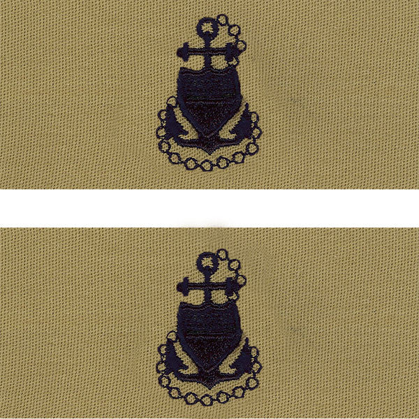 Coast Guard (USCG) Chief Petty Officer (CPO) E-7 Collar Insignia embroidered on desert tan.