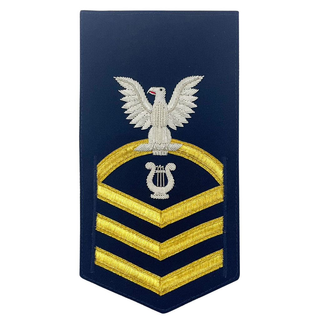 E7 Male Musician MU Enlisted blue Coast Guard Male rating badge.