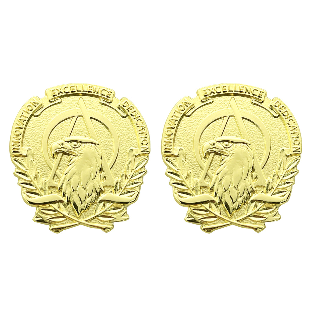Army branch of service collar device: Hard Corp 22k metal finish: Enlisted: acquisition - Priced per pair.