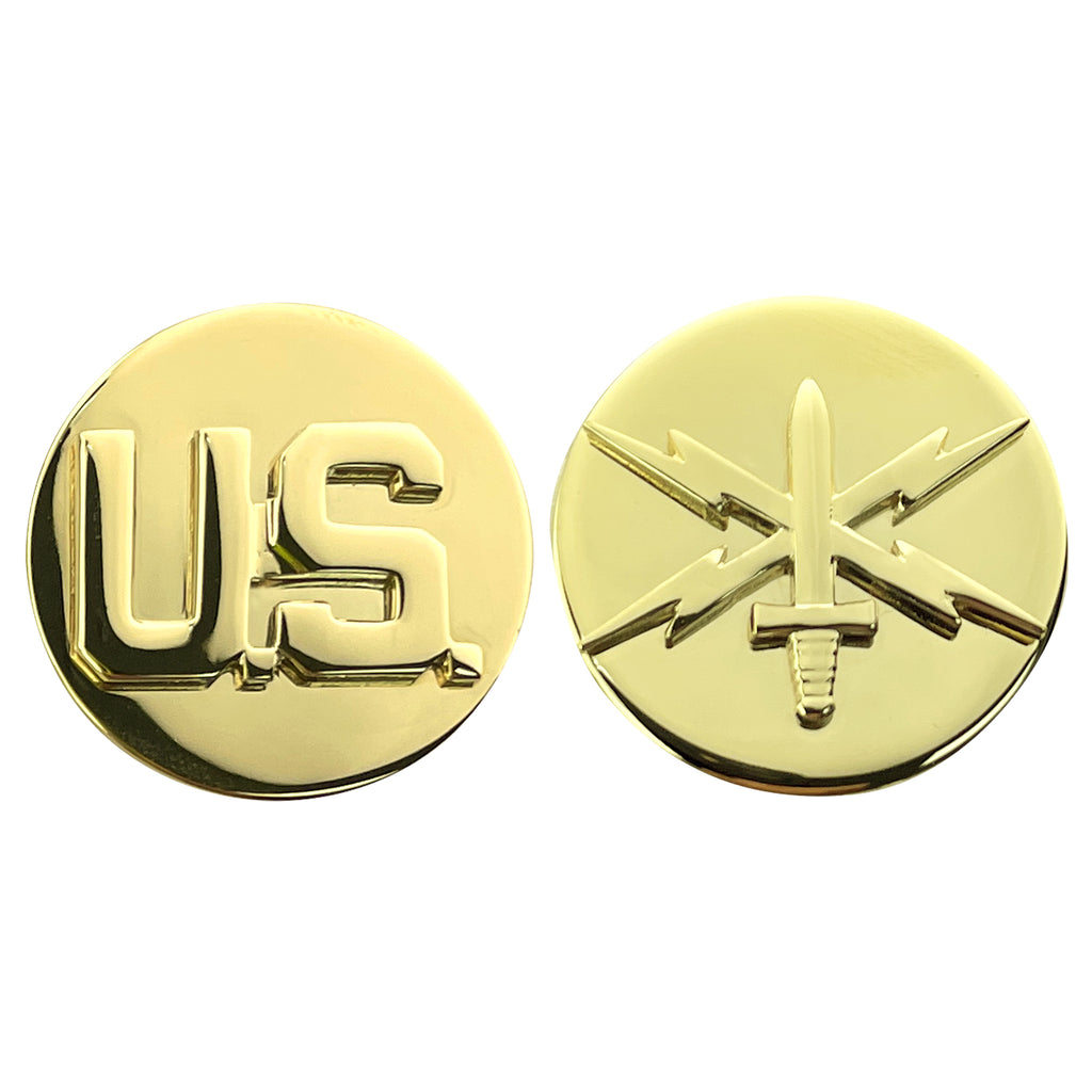Army branch of service collar device: Hard Corp 22k metal finish: Enlisted: cyber warfare - set.