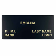 USMC Black Leather Name Patch with Hook - Emblem/Name/Rank - 1 each