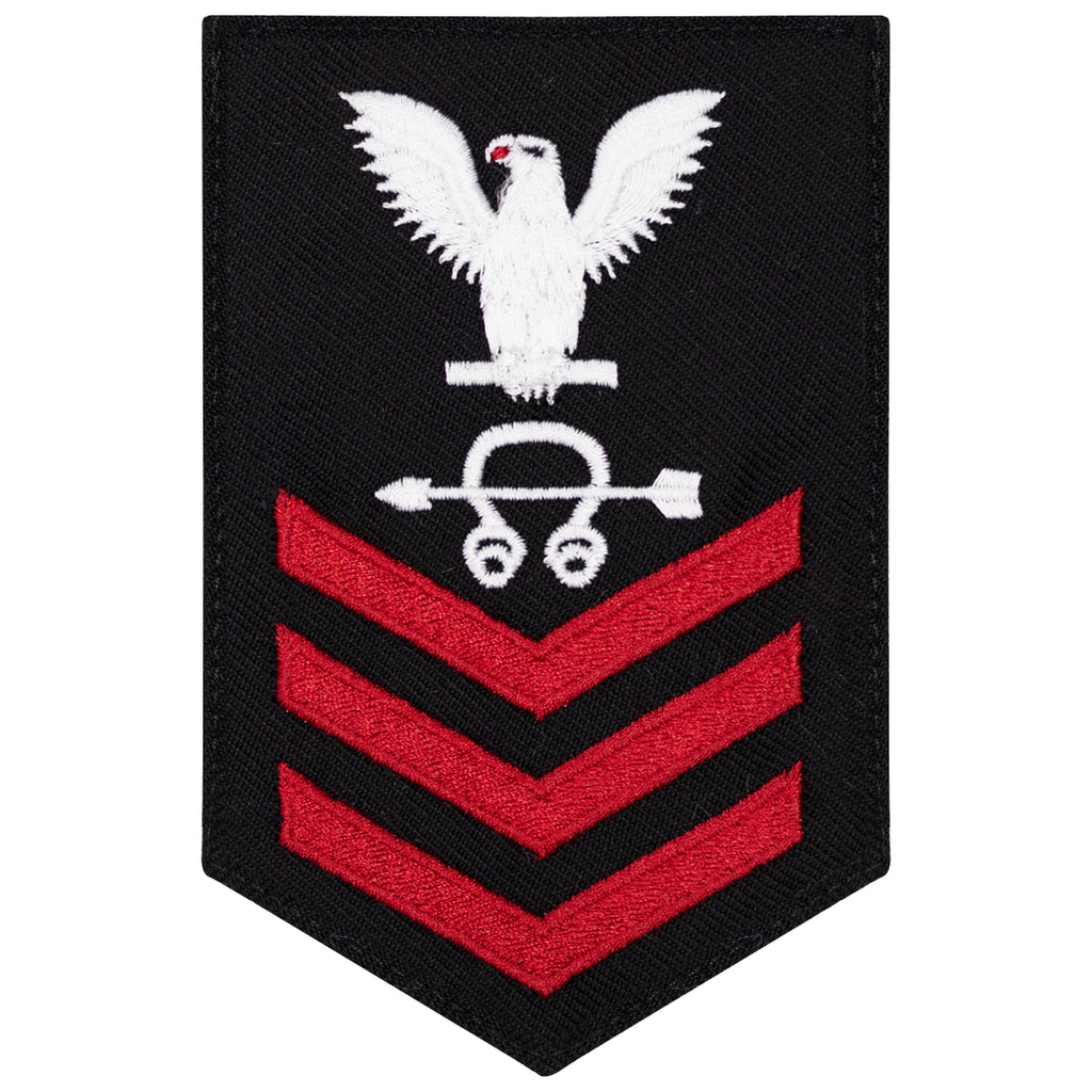 E-6 Sonar Tech (ST) Serge Navy Female rating badge.