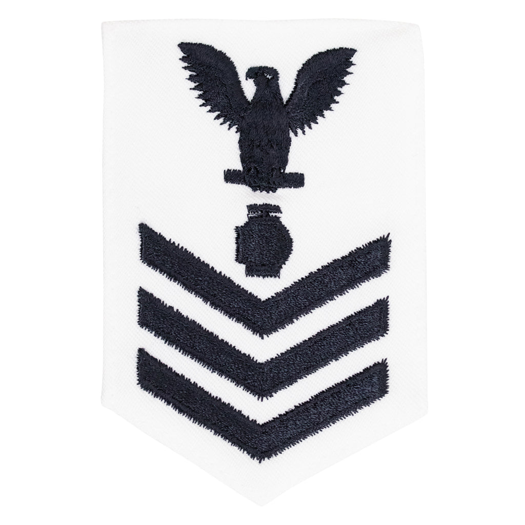 E-6 Utilitiesman (UT) white CNT Navy Female rating badge.