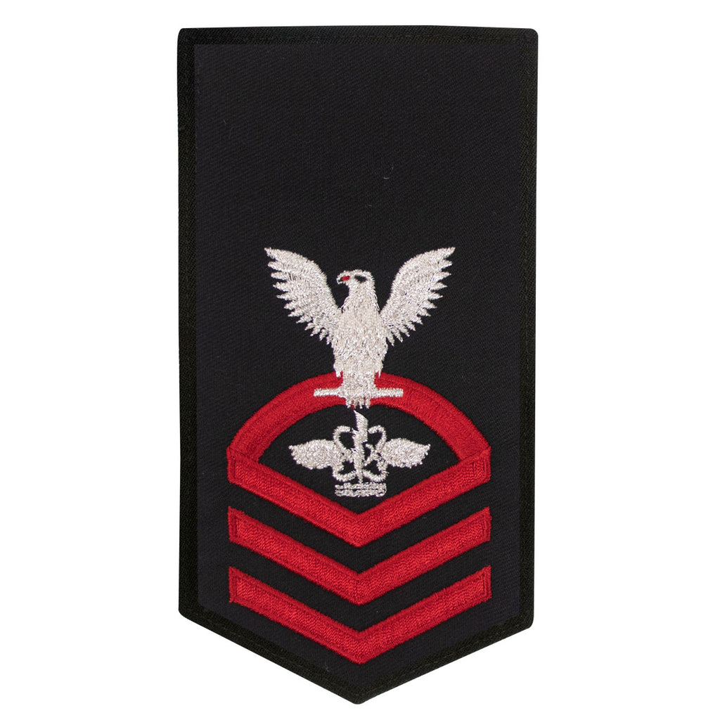 Navy rating badge E-7 seaworthy-all machine made eagle and center with embroidered red embroidered on blue AW Aviation Warfare System Operator