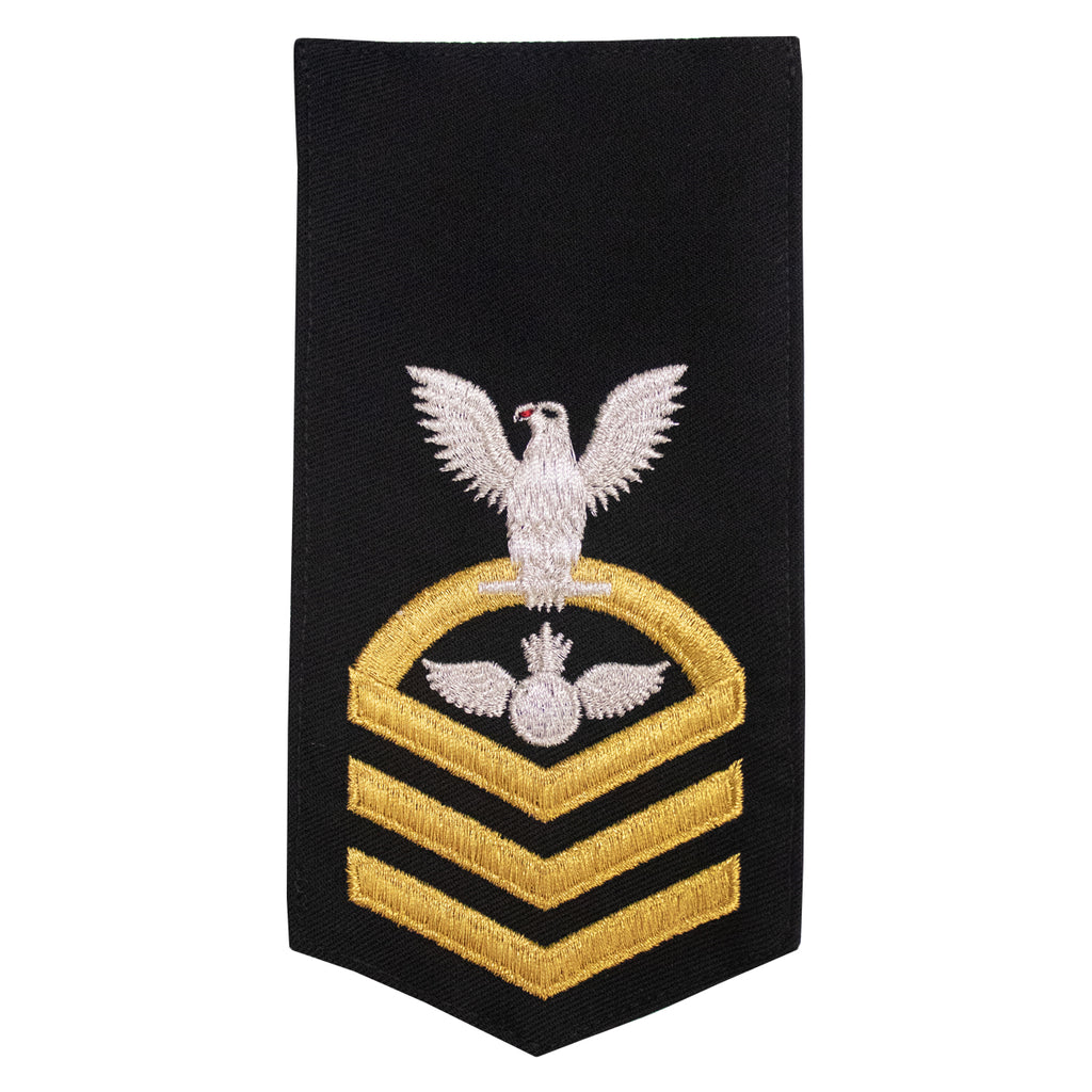 Navy rating badge E-7 seaworthy-all machine made eagle and center with embroidered gold embroidered on blue AO Aviation Ordnanceman