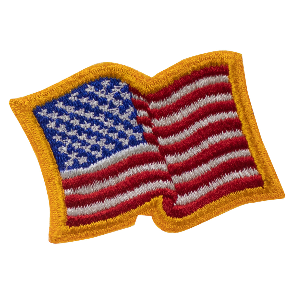 Flag Patch: United States of America 2 by 2-1/2 inch with gold wavy edge