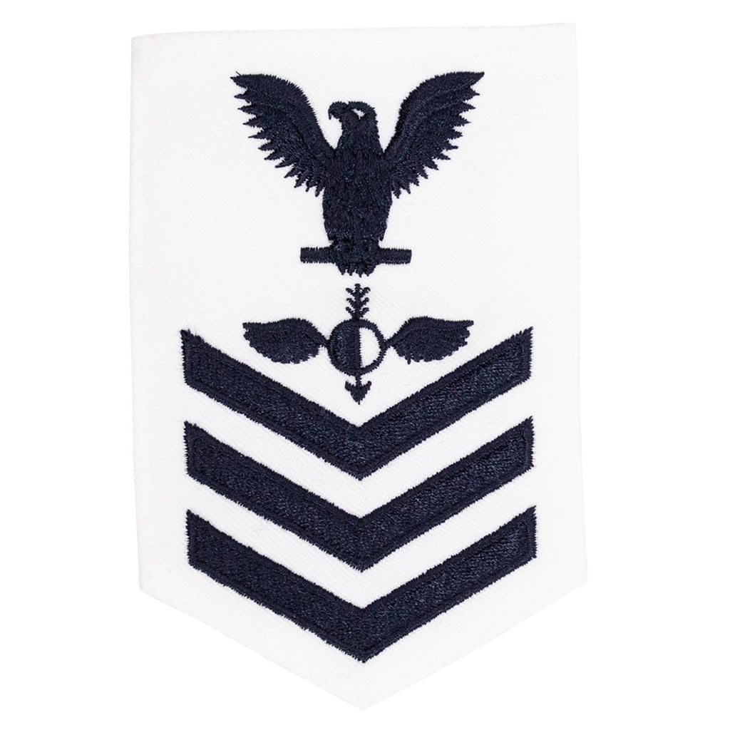 E-6 Aerographers Mate (AG) White CNT Navy Female rating badge.