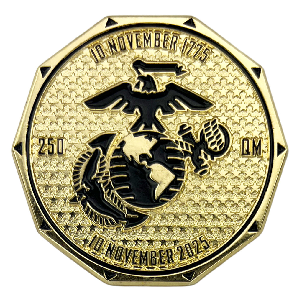 Marine Corps 250th Coin: 2.25" Decagon Shape Coin.