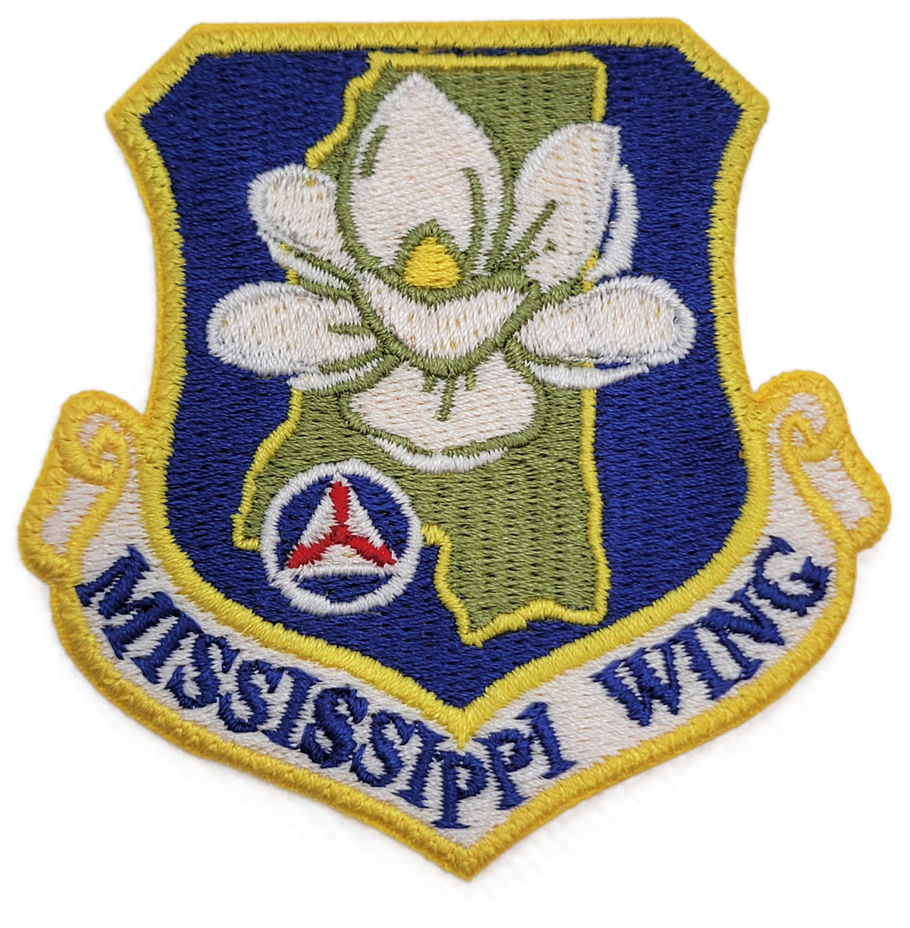 Mississippi wing patch. Civil Air Patrol approved wing patch. Worn on wearers left sleeve of ABUs. Note: Artwork is being updated.