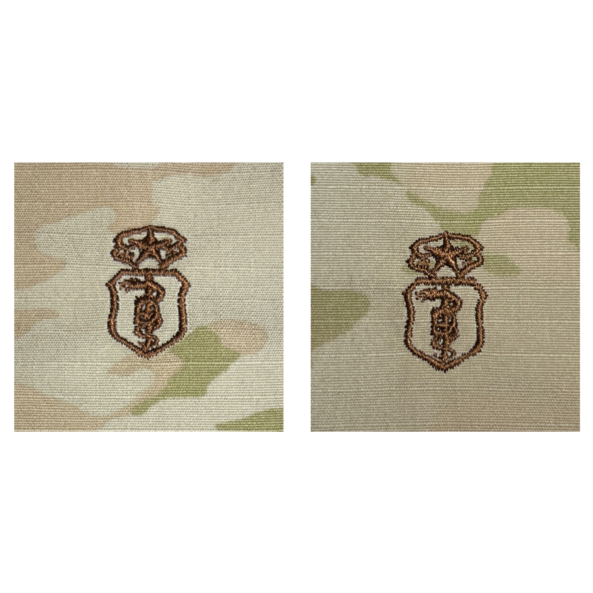 Air Force 3-Color OCP uniform Dentist Chief badge embroidered. Requirement for Chief Dentist is 7 years and must be board certified.