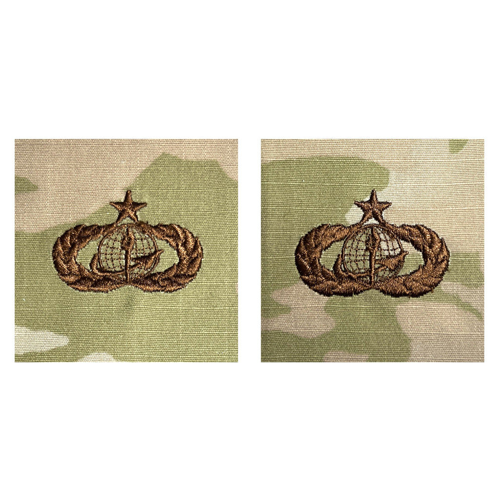 Air Force 3-Color OCP uniform Senior Force Support embroidered. Officers wear the senior badge after 7 years in the specialty.