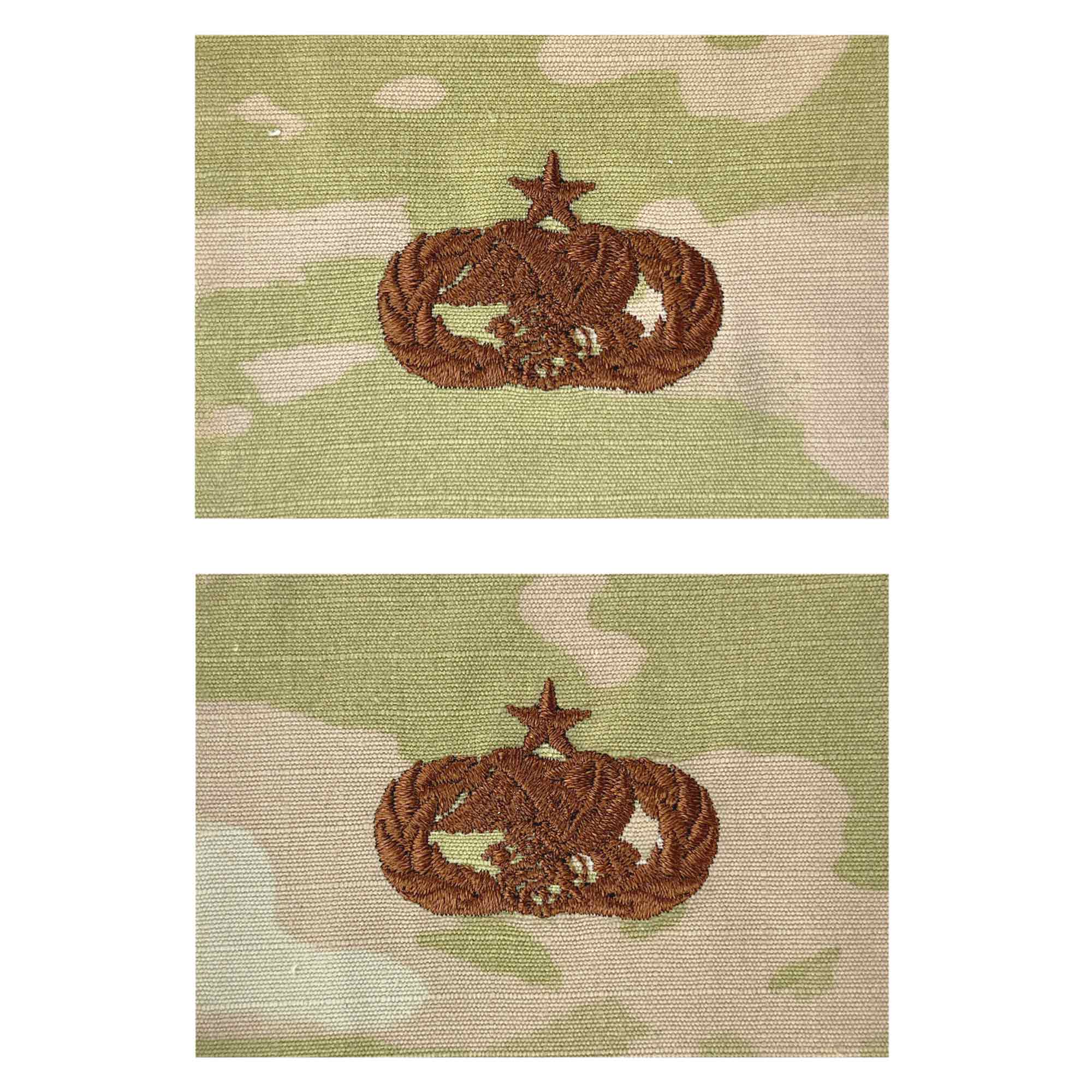 Air Force 3-Color OCP uniform Senior Logistics Readiness badge embroidered. Authorized in 1993 and awarded to officers in the logistics plans and programs career field and to enlisted personnel in the logistics plan career field.