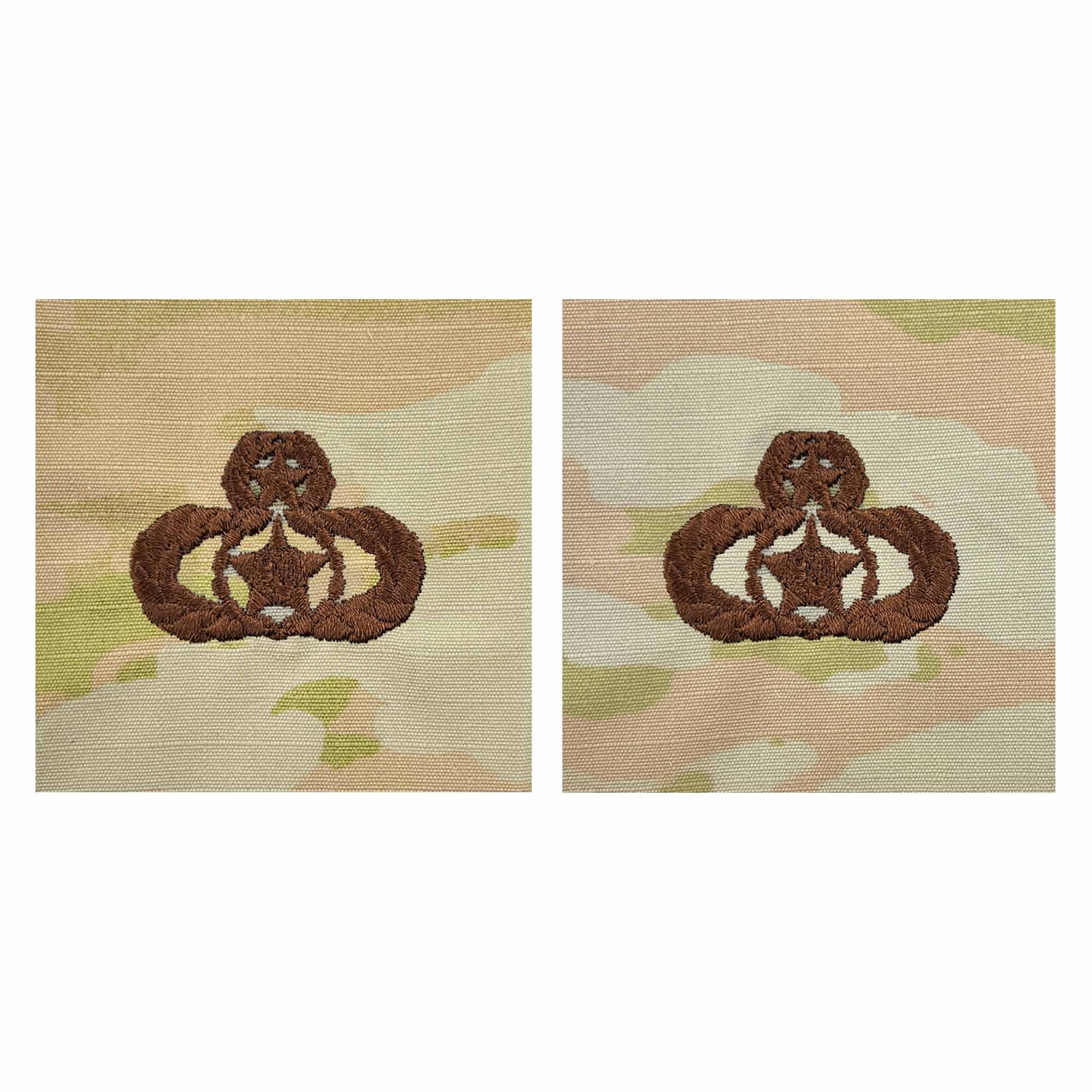 Air Force 3-Color OCP uniform master safety badge embroidered. We've all heard the age-old adage "safety first". Well, in the Air Force, it's not just a saying, it's a full-time job. As a Safety Specialist, you'll be responsible for planning, organizing and directing safety activities for everybody at your base. You'll train Airmen and their families on safety precautions around the base, as well as enforce safety rules to keep everybody out of harm's way.