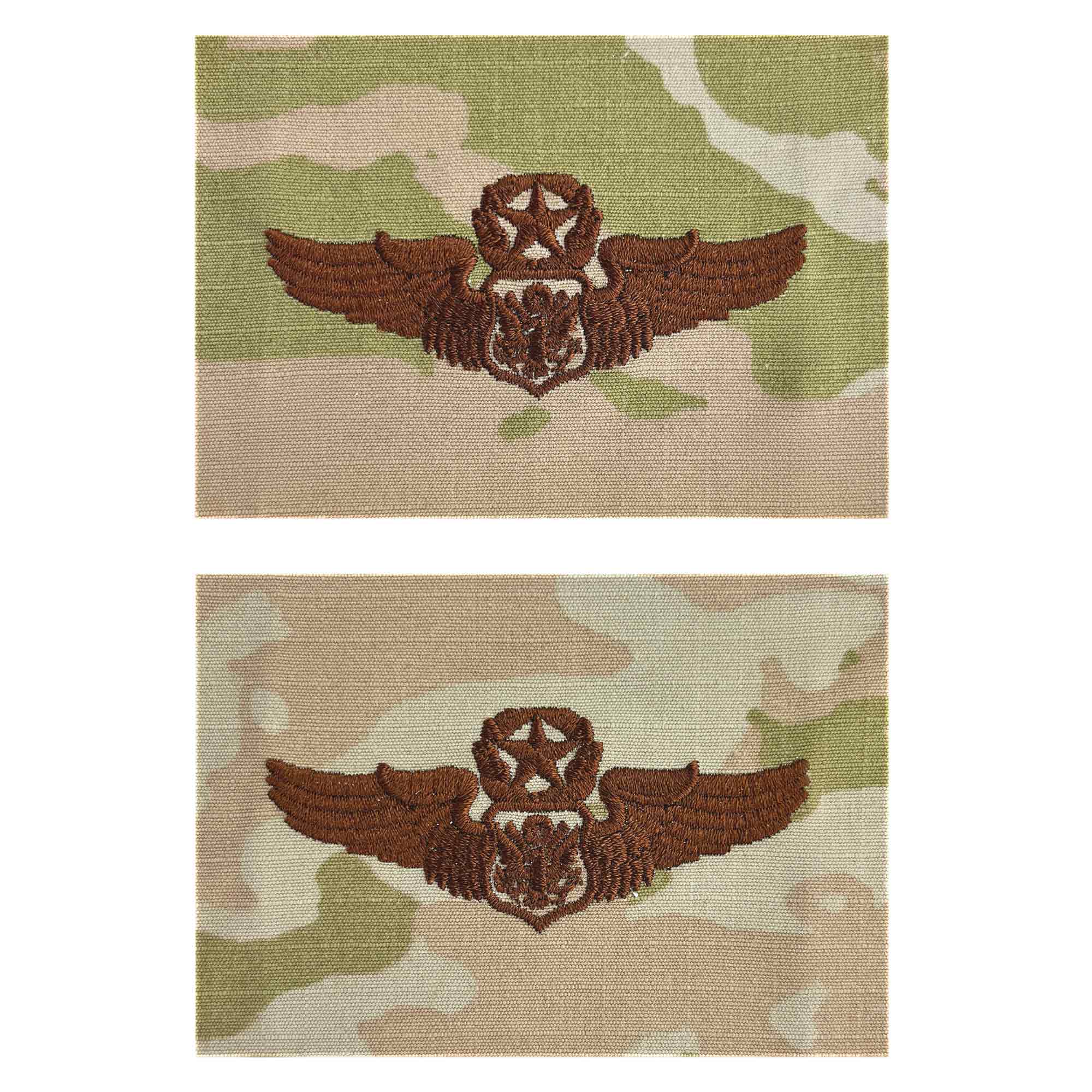 Air Force 3-Color OCP uniform Master officer aircrew badge embroidered. A non-rated officer aircrew must have 15 years service and 120 months as an aircrew member to be awarded this badge.