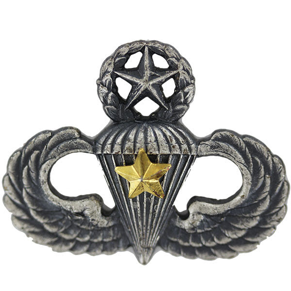 Army badge: Regulation size: oxidized metal finish: master combat parachute 5th award - each.