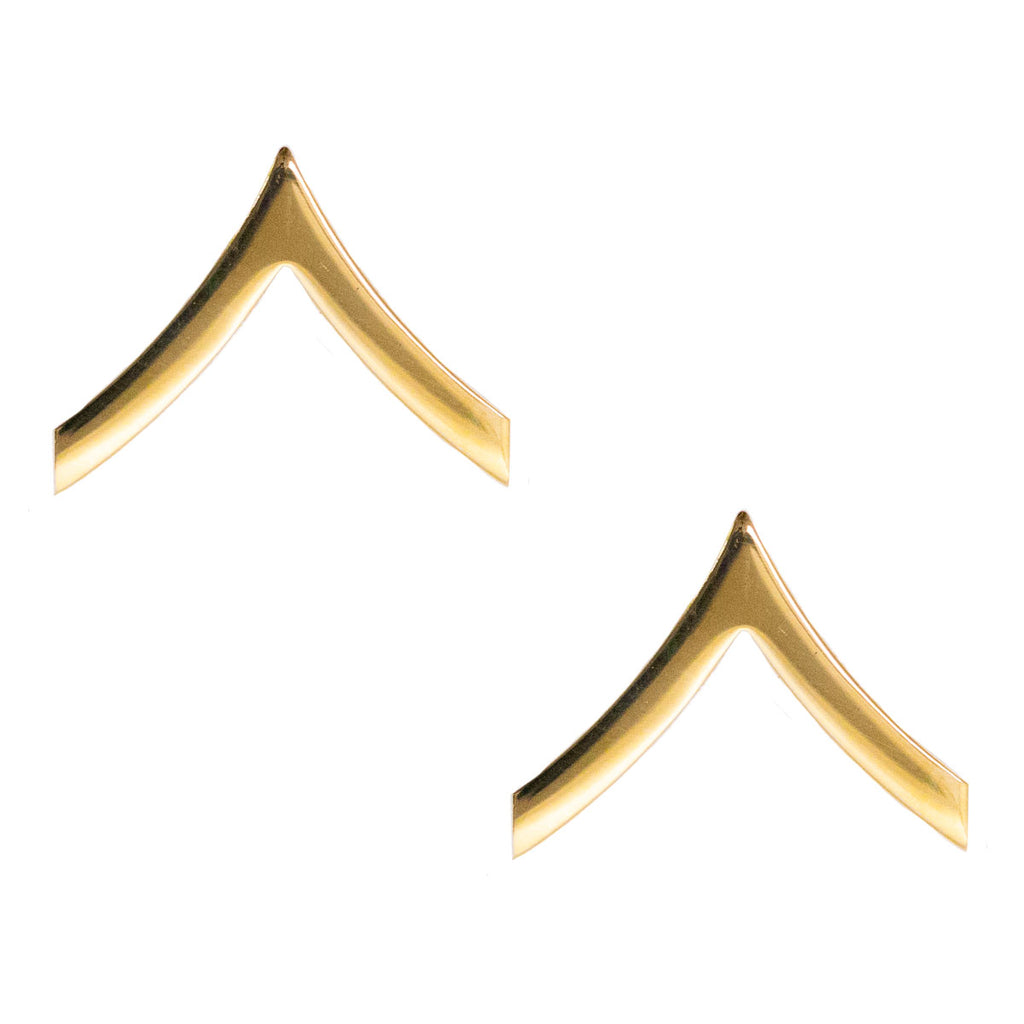 Army chevron rank: Brass metal finish: Enlisted: Private (E-2 / PV2 / OR-2).