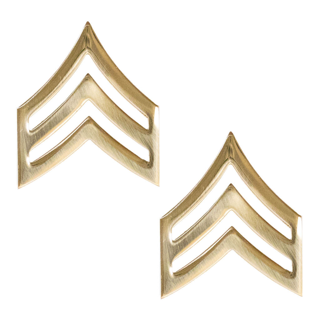 Army chevron rank: Brass metal finish: Enlisted: Sergeant (E-5).