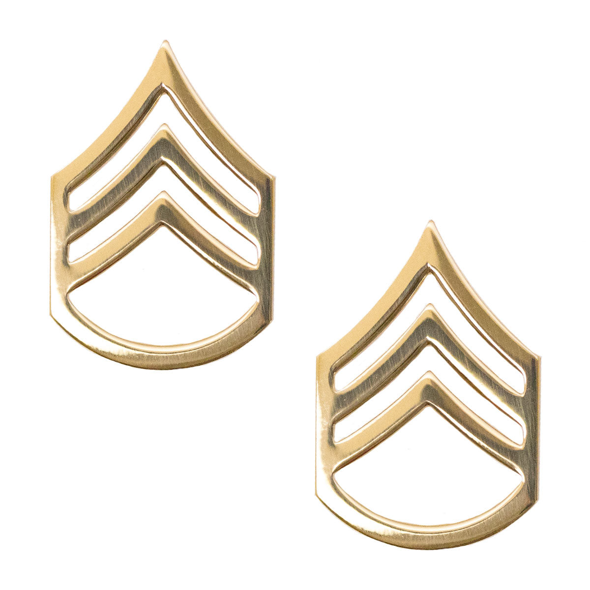 Army chevron rank: Brass metal finish: Enlisted: Staff Sergeant(E-6).