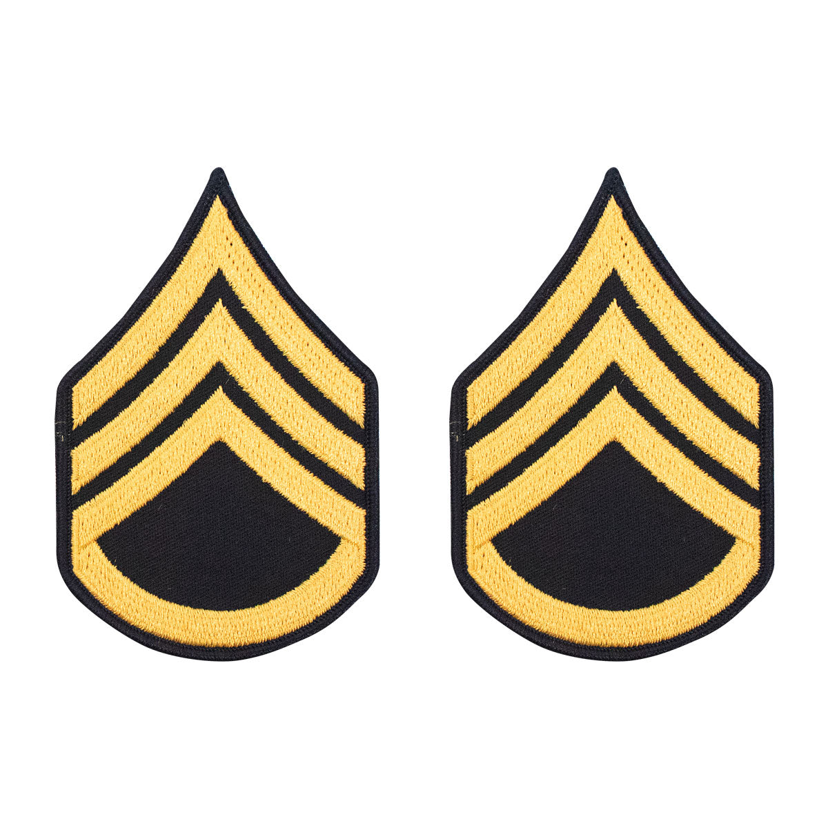 Army chevron rank: large (male size): gold embroidered on blue: Enlisted: Staff Sergeant (E-6 / SSG / OR-6) - Price per pair.