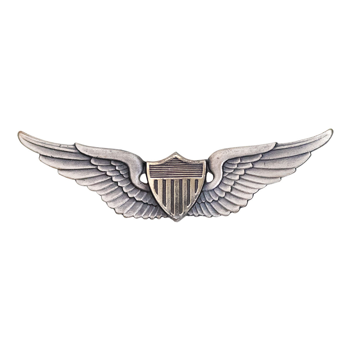 Army badge: Miniature 2" blouse: oxidized metal finish: aviator -