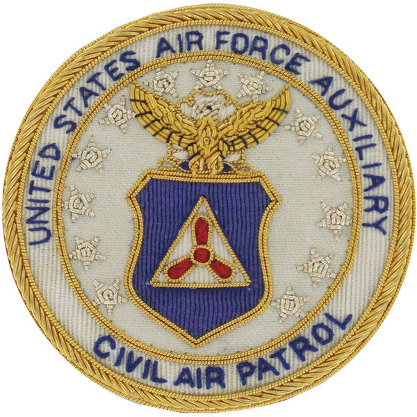 Embroidered bullion Civil Air Patrol seal. This item is worn by senior members of the Civil Air Patrol (CAP) on the mess dress jacket.