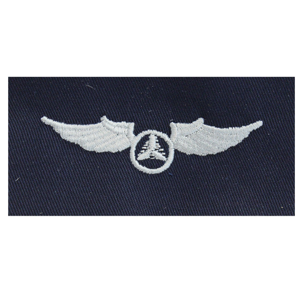 Pilot wings cloth wings embroidered in silver on dark blue background. For wear on BDUs, ABUs and cap field uniform.