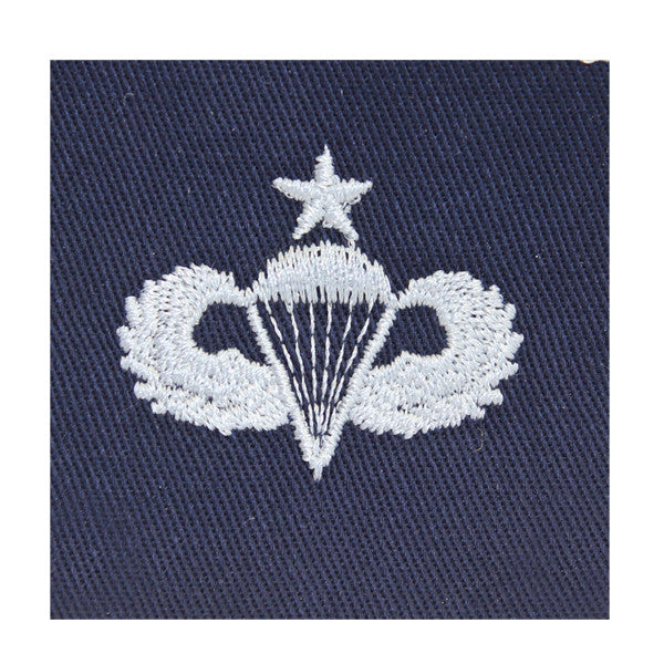 Insignia - Air Force BDG dark Blue Senior Parachutist. This item can be worn on the ABUs, BDUs and CAP blue field uniform.