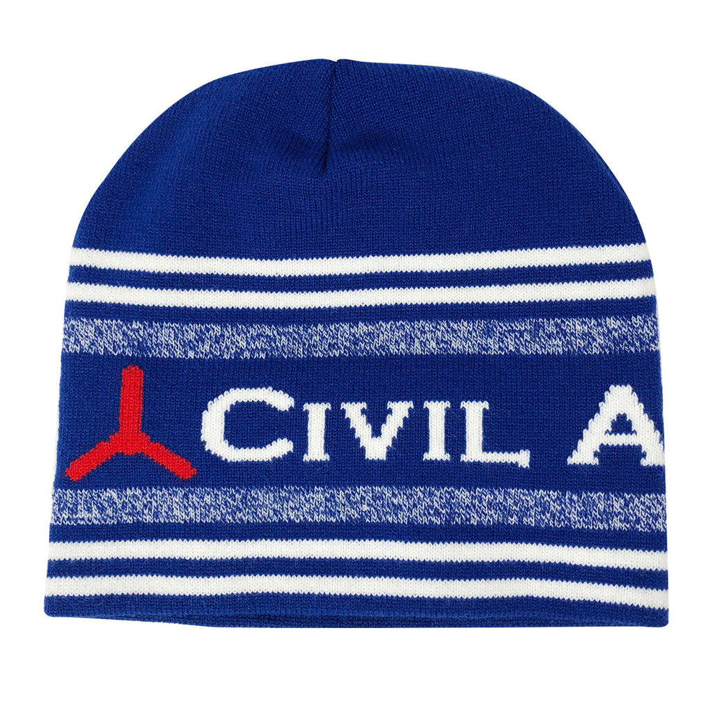 Blue Knit cap without cuff. The words: Civil Air Patrol is listed on the hat and a red propeller.