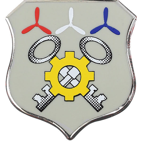 Logistics officer badge basic for wear on the Air Force blue epaulet shirt, overblouse, and cap white aviator shirt. Also for wear on the service coat.