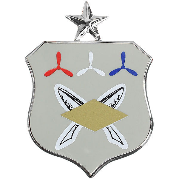 Finance badge senior for wear on the Air Force blue epaulet shirt, overblouse, and cap white aviator shirt. Also for wear on the service coat.