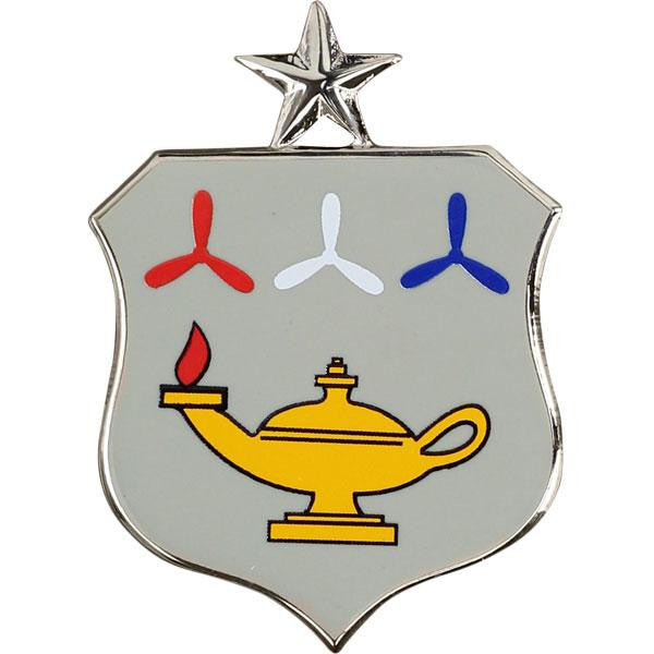 Professional development badge senior for wear on the Air Force blue epaulet shirt, overblouse, and cap white aviator shirt. Also for wear on the service coat.