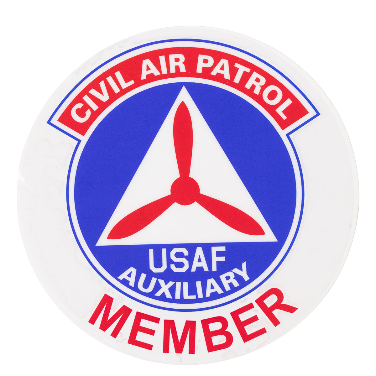 4" Civil Air Patrol (MEMBER) window cling featuring the CAP Emblem with the word MEMBER on the bottom.