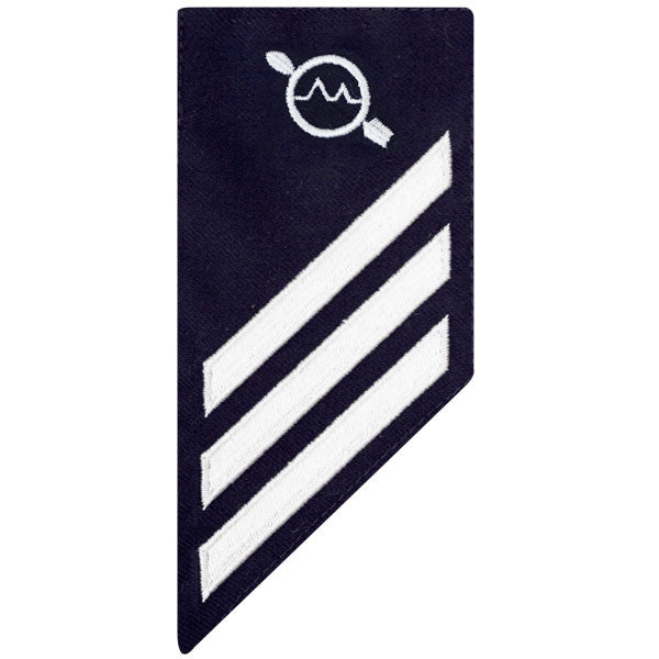E3 Male OPERATIONS SPECIALIST ( SNOS ) blue Coast Guard rating badge.