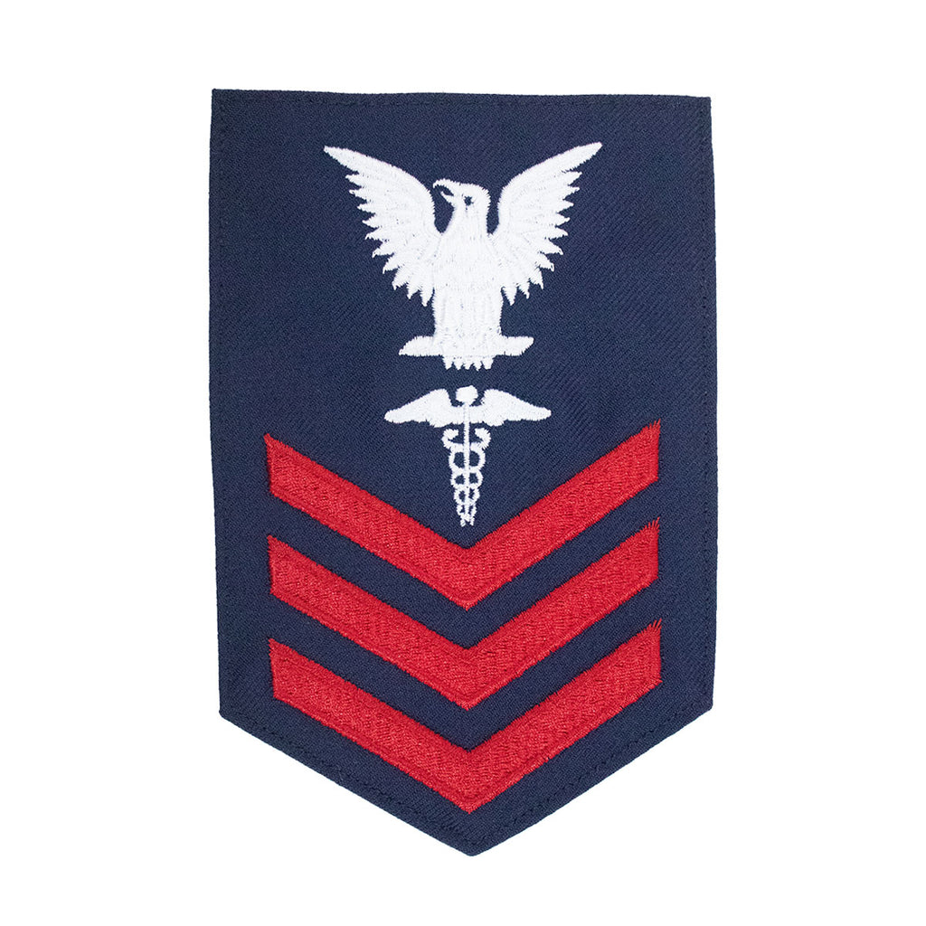 E6 Male HEALTH SERVICES TECHNICIAN ( HS ) blue Coast Guard Male rating badge.