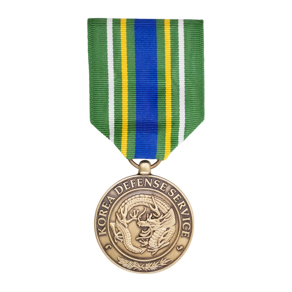 Full size medal for the Korea Defense Service Award. Individually priced. Mounting bar sold separately.