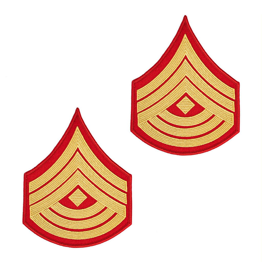 United States Marine Corps (USMC) Evening Dress chevrons gold embroidered on red 1st Sergeant - Female.