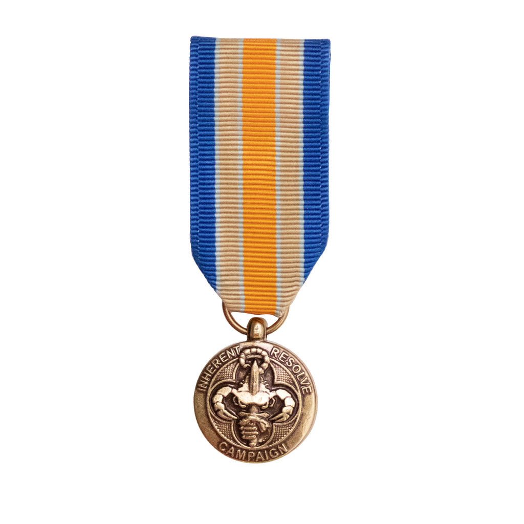 Miniature medal for the Inherent Resolve Campaign award. Individually priced. Mounting bar sold separately.