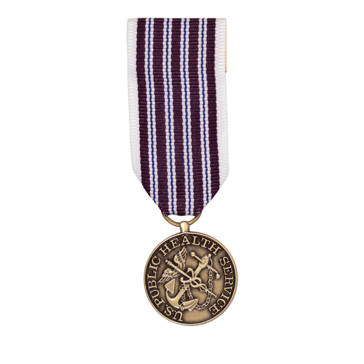 Miniature medal for the Public Health Service Hazardous Duty. Individually priced. Mounting bar sold separately.