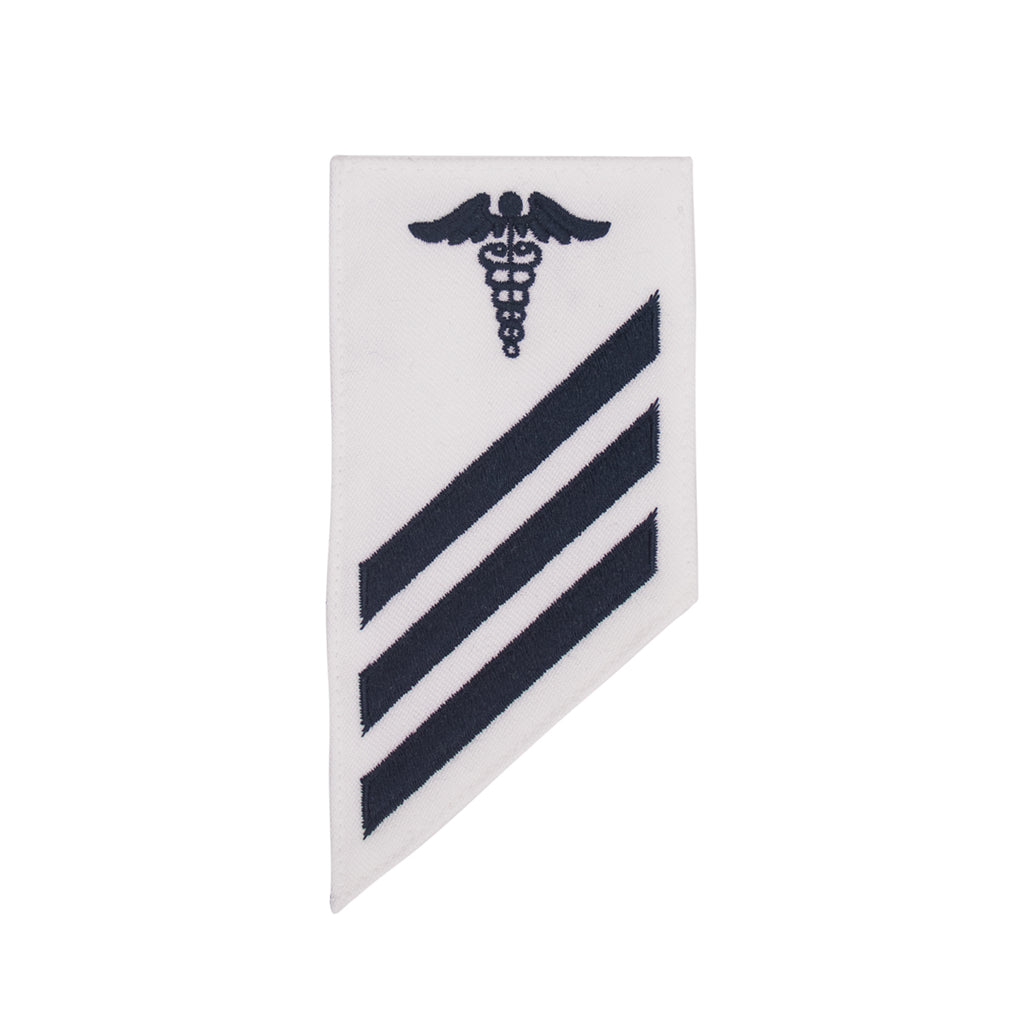 Navy E-3 Combo Rate: HM Hospital Corpsman for dress uniform on white CNT (Certified Navy Twill) - individually priced.