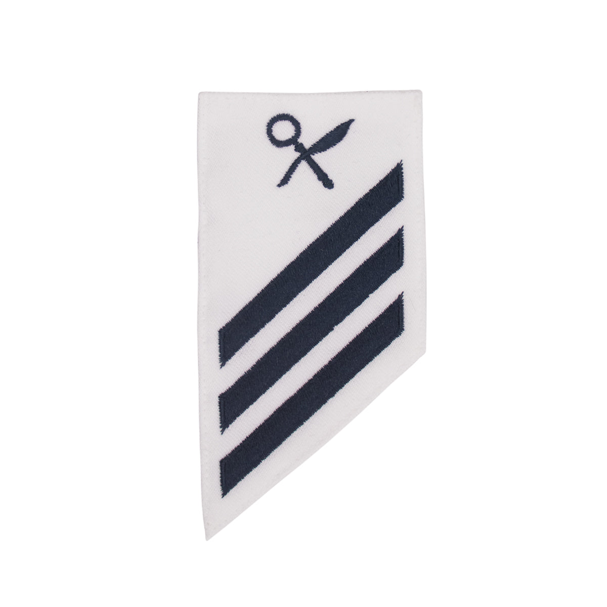 Navy E-3 Combo Rate: IS Intelligence Specialist for dress uniform on white CNT (Certified Navy Twill) - individually priced.