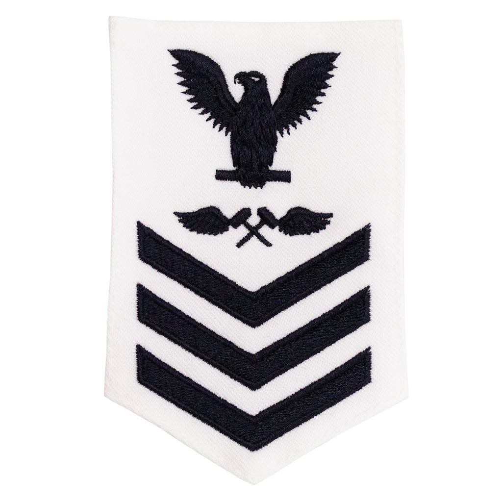 E-6 Aviation Structural Mechanic (AM) White CNT Navy Female rating badge.